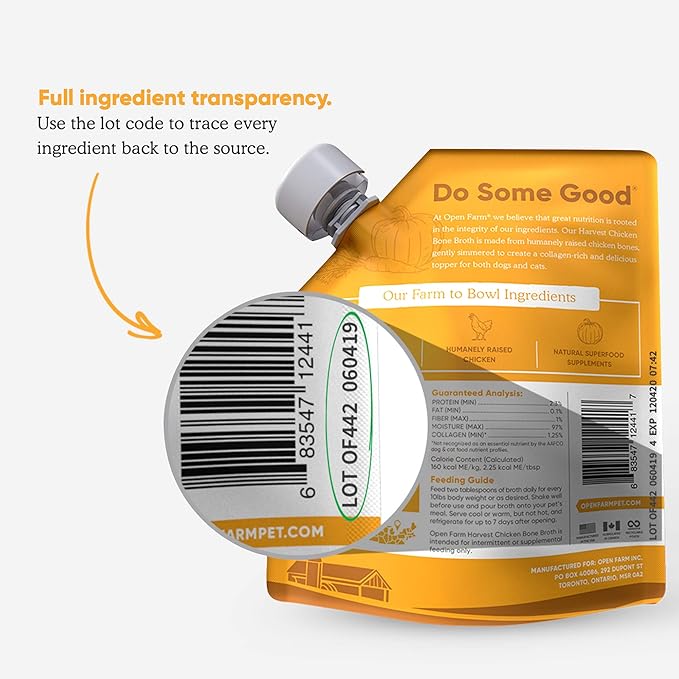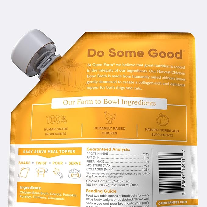 Open Farm Bone Broth, Food Topper for Both Dogs and Cats with Responsibly Sourced Meat and Superfoods Without Artificial Flavors or Preservatives, 12oz (Harvest Chicken)