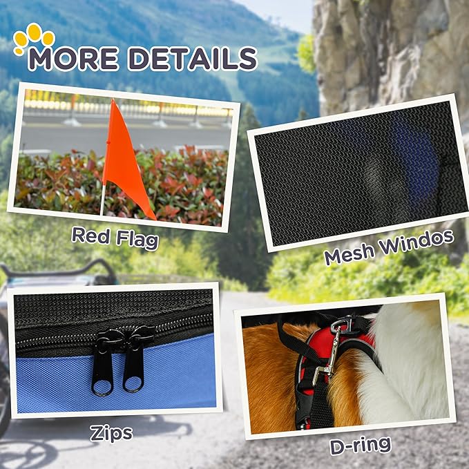 Aosom Dog Bike Trailer Pet Cart Bicycle Wagon Cargo Carrier Attachment for Travel with 3 Entrances Large Wheels for Off-Road & Mesh Screen