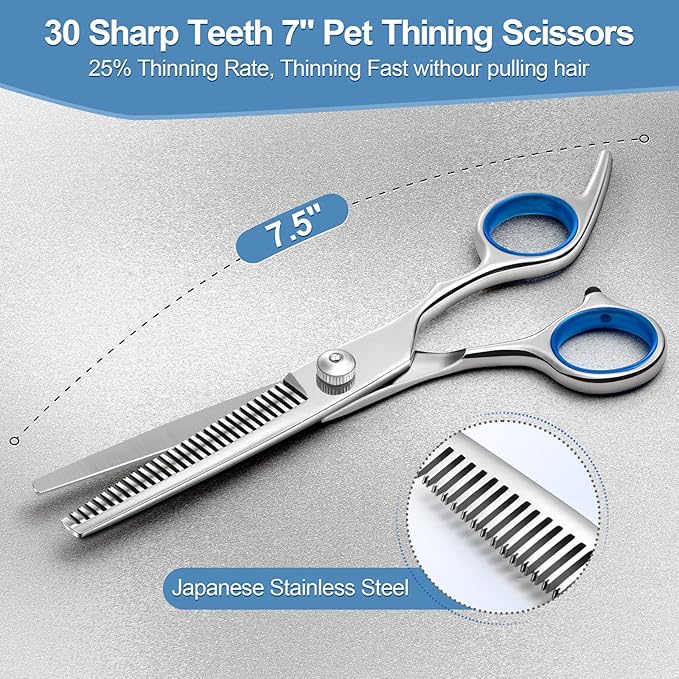 - 【6 in 1 Dog Grooming Scissors Set】The dog grooming scissors set comes with 2 straight scissors, 1 thinning scissor, 1 curved scissor, 1 grooming comb and 1 storage case