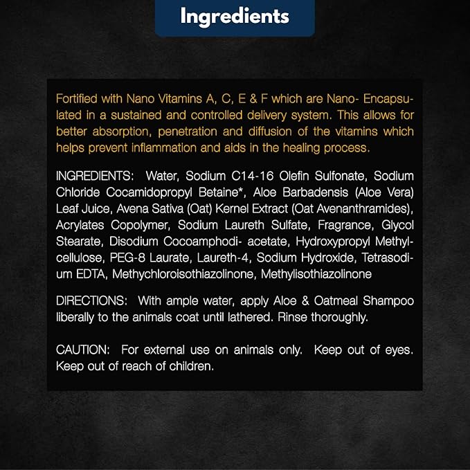 - Natural wellness for itching and allergies: Enhance your pet's comfort with our aloe and oatmeal dog shampoo, specially formulated for itchy skin relief and allergy management; this soothing blend calms irritation, helping your dog maintain a glossy, healthy coat while minimizing allergic reactions. A transformative pet care solution that prioritizes your pet's well-being, offering a gentle cleanse without harsh chemicals, perfect for sensitive skin.