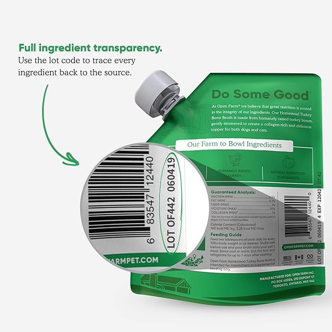 Open Farm Bone Broth, Food Topper for Both Dogs and Cats with Responsibly Sourced Meat and Superfoods Without Artificial Flavors or Preservatives, 12oz