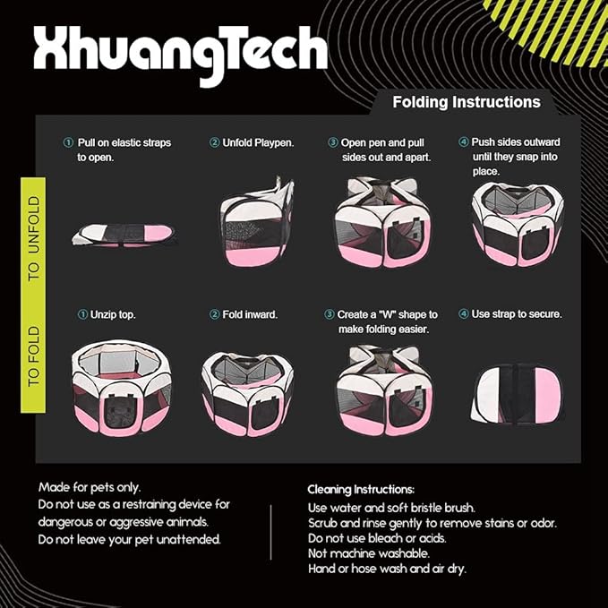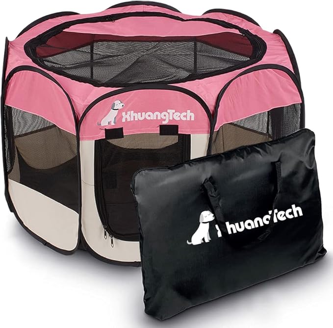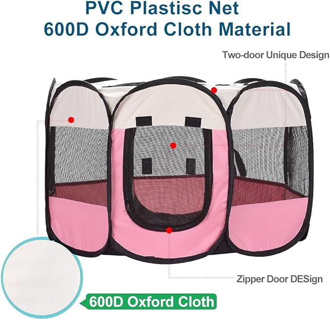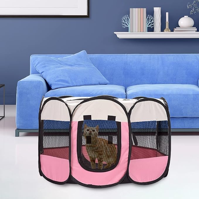 XianghuangTechnologyPet Portable Foldable Playpen, Dog/Cat/Puppy Exercise Pen Kennel, Removable Mesh Shade Cover (Pink)