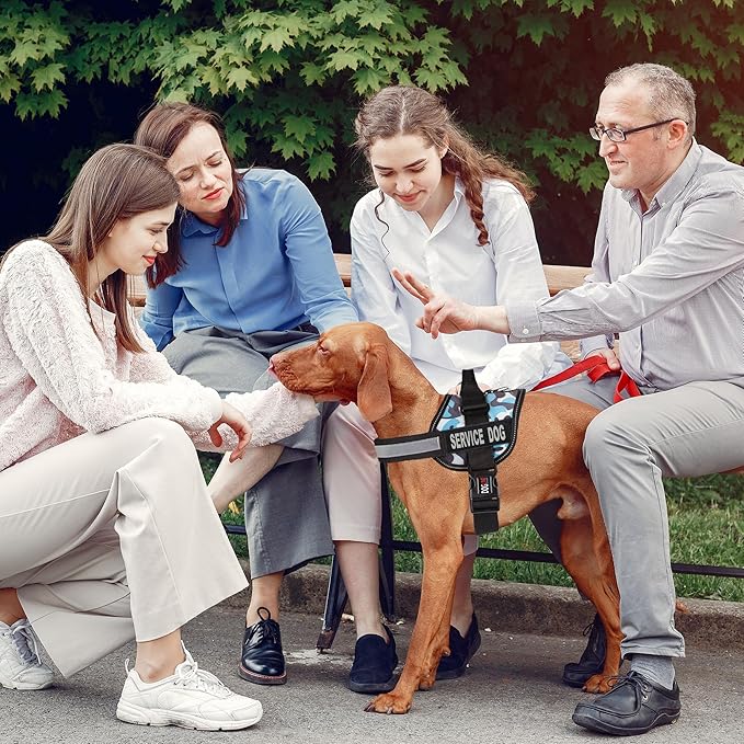 Dogline Unimax Service Dog Harness Vest with Removable Service Dog Patches Adjustable Straps Breathable Neoprene for Medical Identification Training Dogs Girth 18 to 25 in Blue Camo