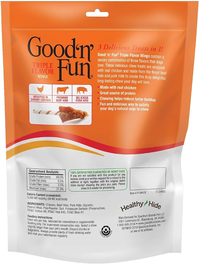 - LONG-LASTING: Good ‘n’ Fun Triple Flavor Wings are truly delightful, long-lasting rawhide treats your dog will love.