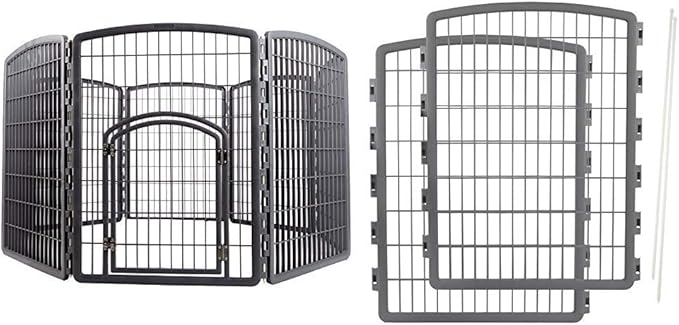 IRIS Exercise 8 Panel Pen Panel Pet Playpen with Door - 34 Inch, Gray with IRIS Exercise 2 Panel Add On Panel Pet Playpen with Door - 34 Inch, Gray