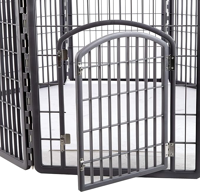 - The Iris 34'' Exercise 8-panel dog playpen with door can be used for dog play yards, play gate, small dog fence, and more