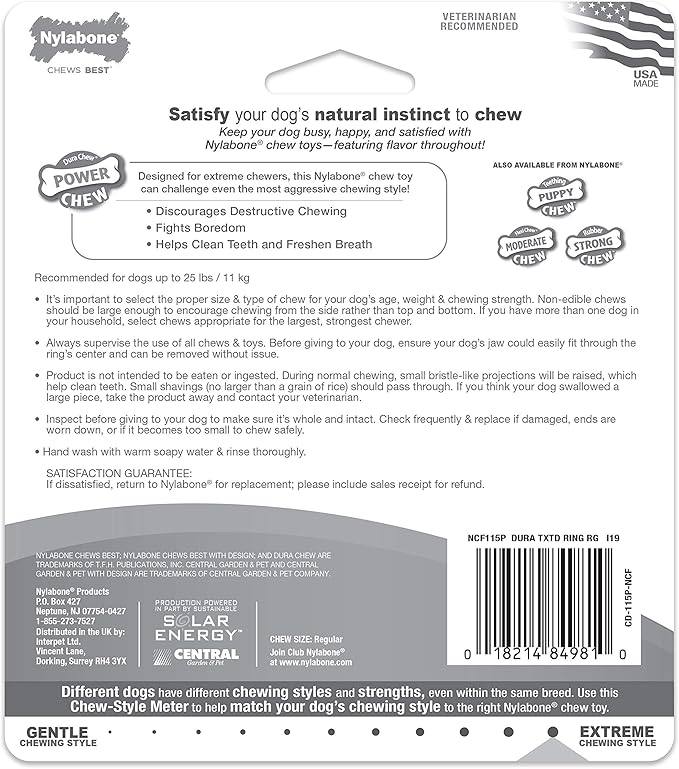 Nylabone Power Chew Textured Dog Chew Ring Toy - Tough and Durable Dog Chew Toy for Aggressive Chewers - Flavor Medley, Small/Regular (1 Count)