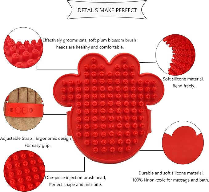 - NON-TOXIC Material: Durable and soft SILICONE material rather than traditional rubber,100% non-toxic for pet. Soft plum blossom brush head are healthy and comfortable, your pet friend will enjoyed combing and feel relaxed for a whole day.