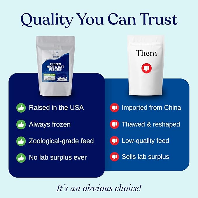 - Trusted; don’t risk inferior imported feeders from China or lab surplus for snakes and reptiles; these 5 rat medium feeders are born in Cleveland Ga; there are no ingredients or flavoring added; this product has been trusted the biggest zoos around the world and tens of thousands of satisfied customers