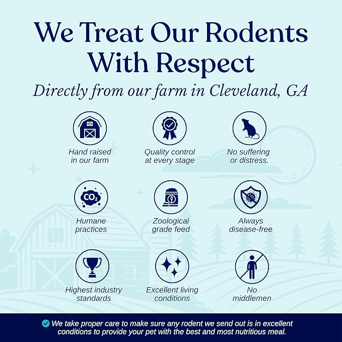 - Raised with kindness; this pack of 5 frozen rat medium feeders for snakes and reptiles has been produced under the most humane conditions; we only employ responsible staff who treat our feeder mice and rats with kindness and respect; our feeder mice and rats for snakes are put to sleep with CO2 so they never suffer