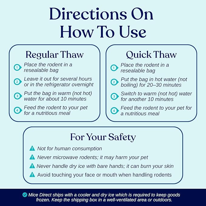 - Arrives frozen; MiceDirect frozen pack of 5 rat medium feeders for snakes are packaged in dry ice so that they arrive fresh cold and intact