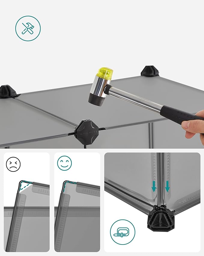 - [Assembly Is a Breeze] Simply join the plastic panels with the multi-angle connectors with the help of the included rubber mallet, you’ll quickly set up this pet playpen. The modular, lightweight structure also makes it easy to disassemble or move around