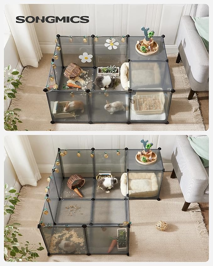 - [Semi-Transparent & Easy-to-Clean] Through the translucent panels, you can see your furry friends groom themselves, stretch out, or even drift off into their dream land. To keep the pet fence clean, simply wipe the surface with a damp cloth