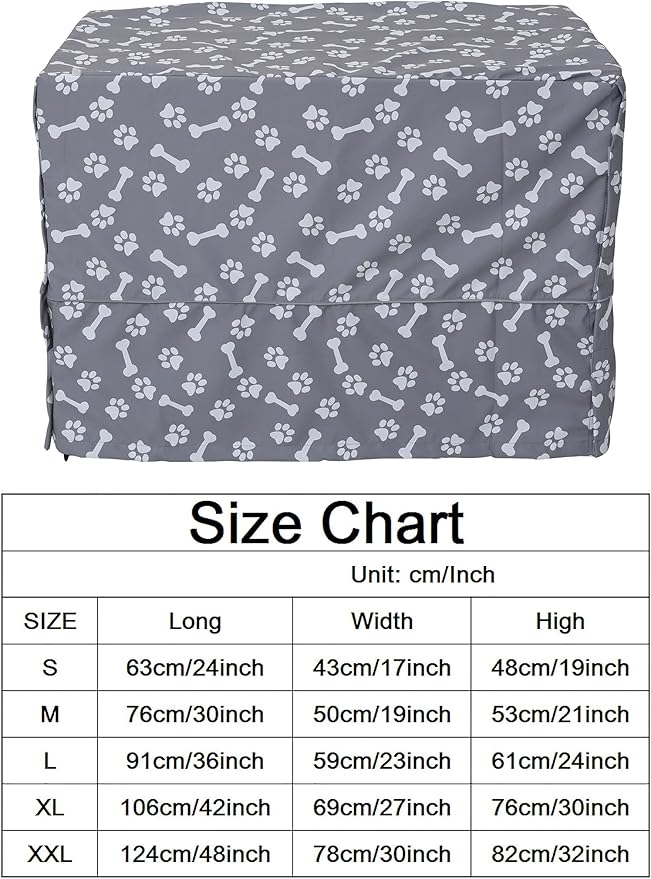 Dog Crate Cover for Wire Crates, Heavy Nylon Waterproof, Fits Most 48" inch Dog Crates, Easy to Put On, Take Off, and Adjust - Cover only - GrayPaw - S