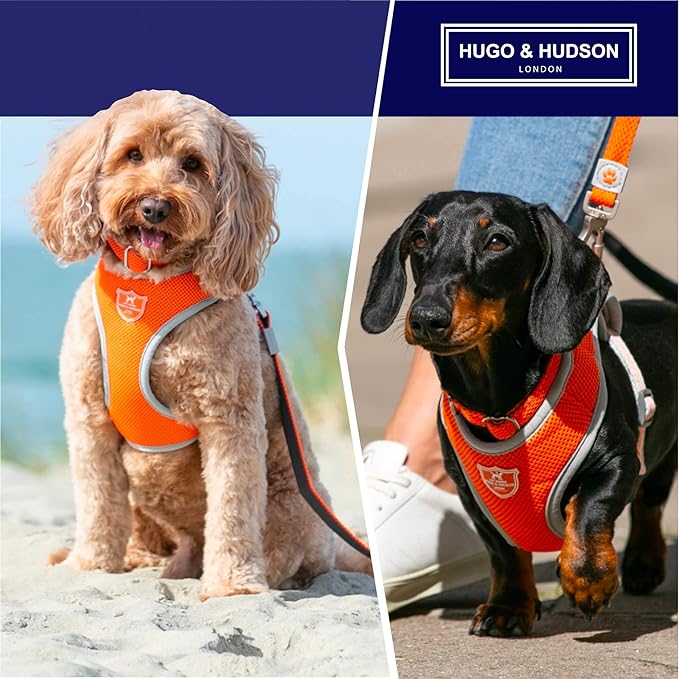 HUGO & HUDSON Dog Harness No-Pull Pet Harness Adjustable Quick Dry Mesh Padded Vest, Orange, XS