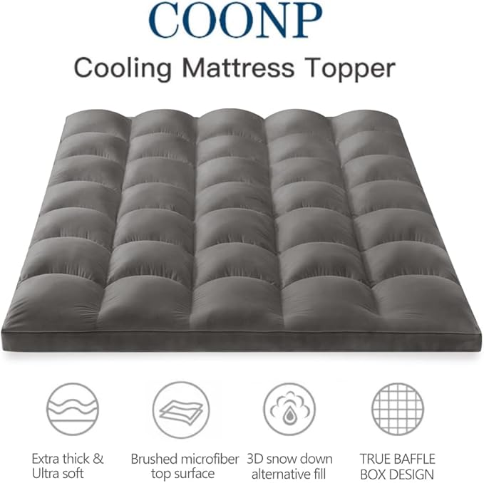 COONP Twin Mattress Topper, Extra Thick Pillowtop, Cooling Plush Mattress Pad Cover Bed Topper Protector with 8-21 Inch Deep Pocket (Grey, Twin)