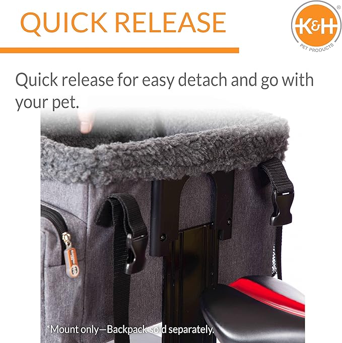• REAR MOUNT: Accessory designed for use with the K&H Travel Bike Basket or the K&H Travel Bike Backpack (Basket/Backpack sold separately)