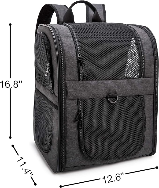 - LARGE SIZE-Designed for the maximum convenience and comfort for you and your pet while hiking, traveling, or taking your best friend to the vet, or going for a walk in the park. Measures approximately 11.4" x 12.6" x 16.8" (L x W x H),larger than most competitors in the market.Easily fits medium cats&dogs,even large sized cats and other medium pets.