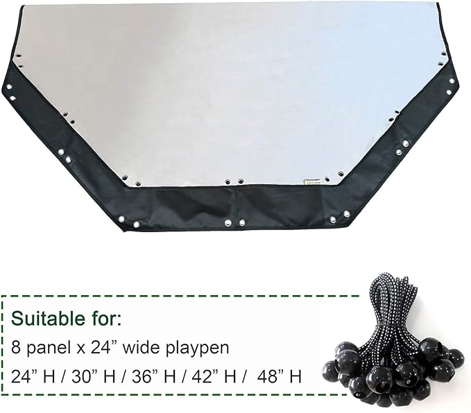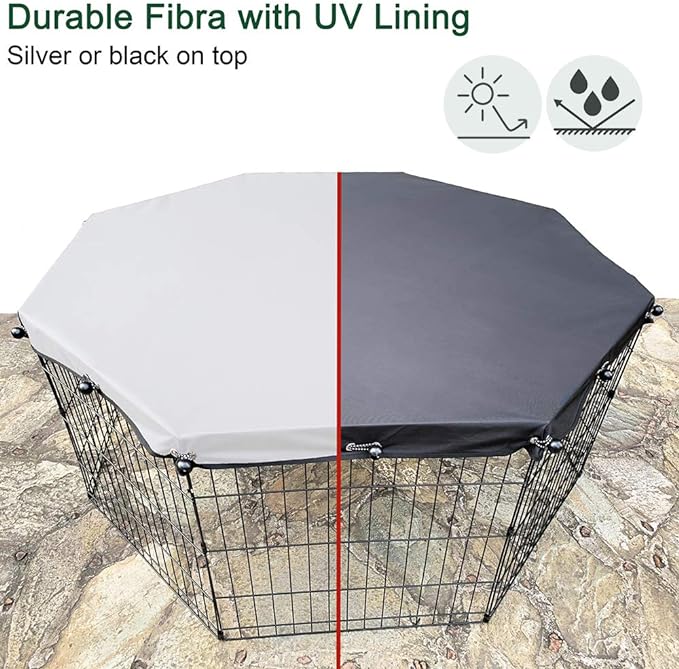 Universal Dog Playpen Cover with Sun/Rain Proof Top, Provide Shade and Security for Outdoor and Indoor, Fits All 24" Wide 8 Panels Pet Exercise Pen (8x24 W Cover, 600D Oxford)
