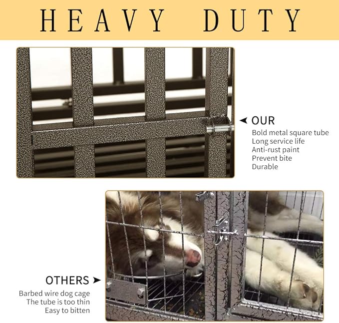 - 【Escape Proof Design】The special Y-pattern design of the heavy duty dog crate makes a beautiful and bite-proof shape to effectively prevent the dog's mouth from sticking out. Sturdy metal frame provides optimal ventilation and visibility which offer your dog a comfortable and reliable environment.