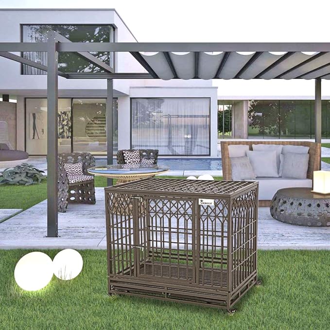 - 【Size and Aftersales】 42"L X 31"W X 37"H, Brown. The height of the dog cage with wheels is 37 inches, and the internal height is 30.7 inches. Suitable for most large dogs, perfect for indoor and outdoor use. If any quality problem within 3 years, please contact us. We will provide with the most satisfactory solution!
