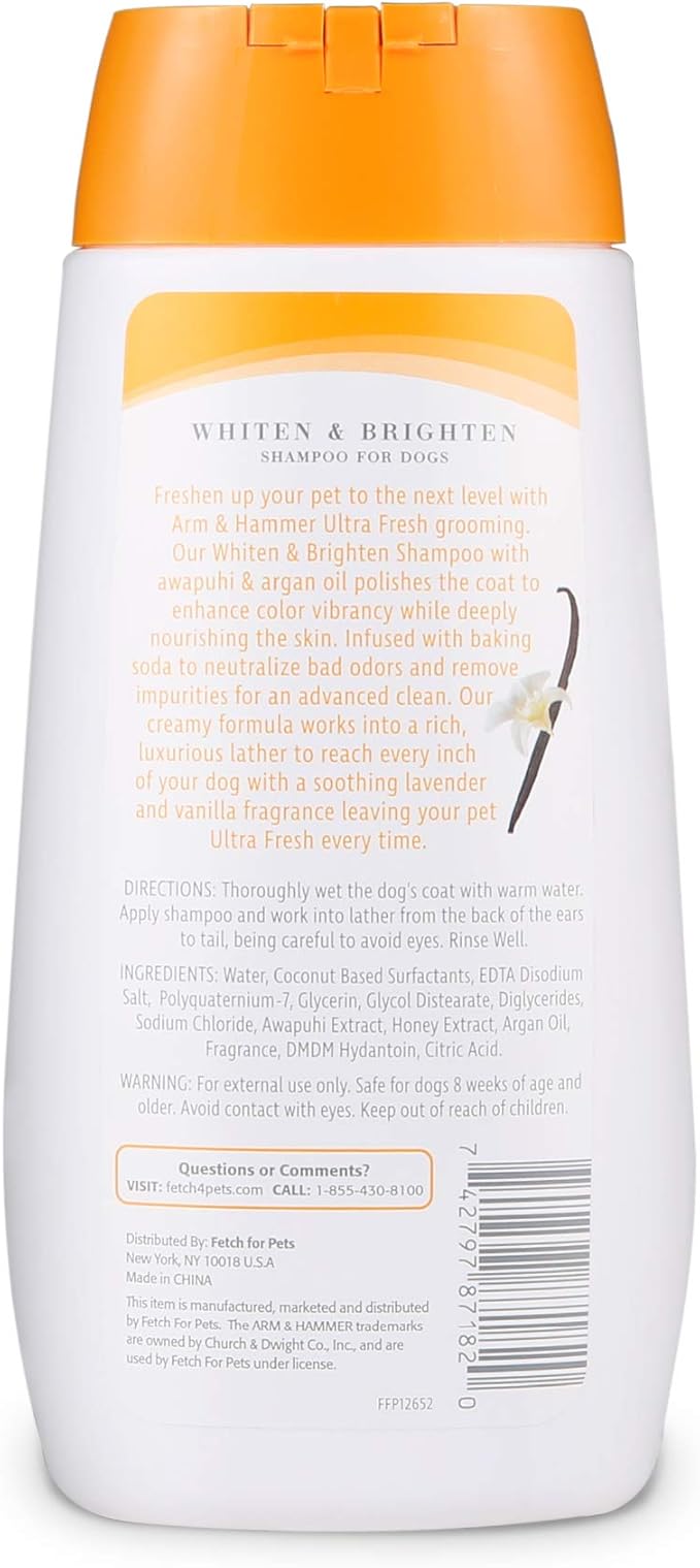 Arm & Hammer Ultra Fresh Whitening and Brightening Dog Shampoo | Baking Soda Neutralizes Bad Odors | Pet Shampoo in Calming Lavender and Vanilla Scent, 16 Fl Oz