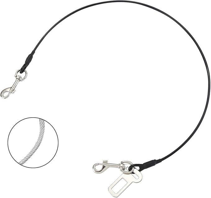 No-Chew Dog Seat Belt, Stainless Steel Cable Pet Car Seatbelt Safety Restraint Tether Puppy Vehicle Seat Belt with Buckle Latch(31 inch)