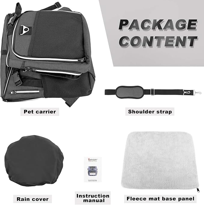 Dog Bike Basket Carrier, Expandable Foldable Soft-Sided Dog Carrier, 2 Open Doors, 5 Reflective Tapes, Pet Travel Bag,Dog Backpack Carrier Safe and Easy for Small Medium Cats and Dogs(Black)