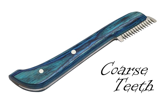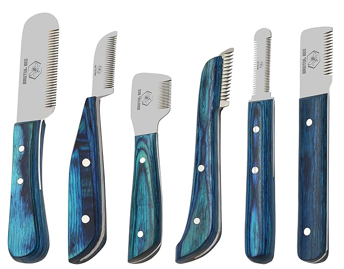 Stripping Knives Set of 6 in Stainless Steel, Wooden Handle, Non-Slip Tools for Grooming Dogs (Blue)