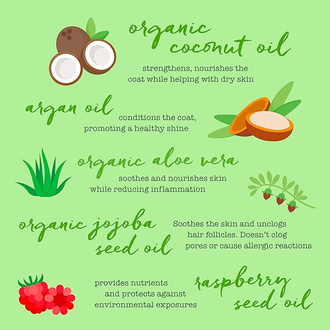 - Product Benefits : organic aloe vera, parabens, long-lasting scent, no sodium lauryl sulfate, gentle cleansing, coat conditioning, organic coconut oil, argan oil, grains, pH Balanced, safe for sensitive skin, toxins, Hypoallergenic, odor elimination, harsh soaps, artificial fragrances organic aloe vera, parabens, long-lasting scent, no sodium lauryl sulfate, gentle cleansing, coat conditioning, organic coconut oil, argan oil, grai… See more