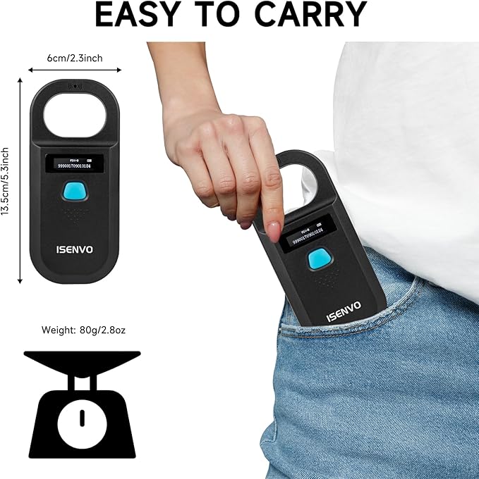 - 【Pet Microchip Scanner Helps Animals go Home Again】Pets are your little friends who accompany you every day, so you don't want to lose your pets and accidents. The pet scanner can help you accurately scan the pet chip code, and register the website https://isenvo.com/ to know the detailed location after it is lost;