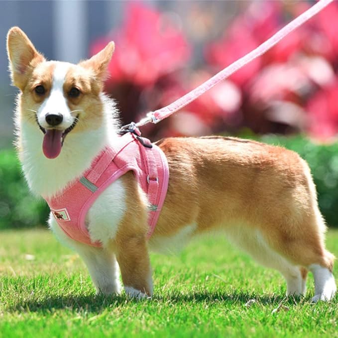 FEimaX Dog Harness and Leash Set, No Pull Reflective Adjustable Pet Harnesses for Puppy Kitten Soft Corduroy Chest Harness for Small Medium Dogs and Cats Easy Control Vest for Outdoor Walking