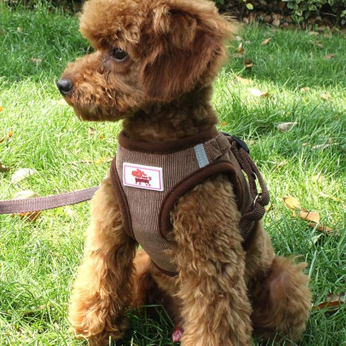 FEimaX Dog Harness and Leash Set, No Pull Reflective Adjustable Pet Harnesses for Puppy Kitten Soft Corduroy Chest Harness for Small Medium Dogs and Cats Easy Control Vest for Outdoor Walking