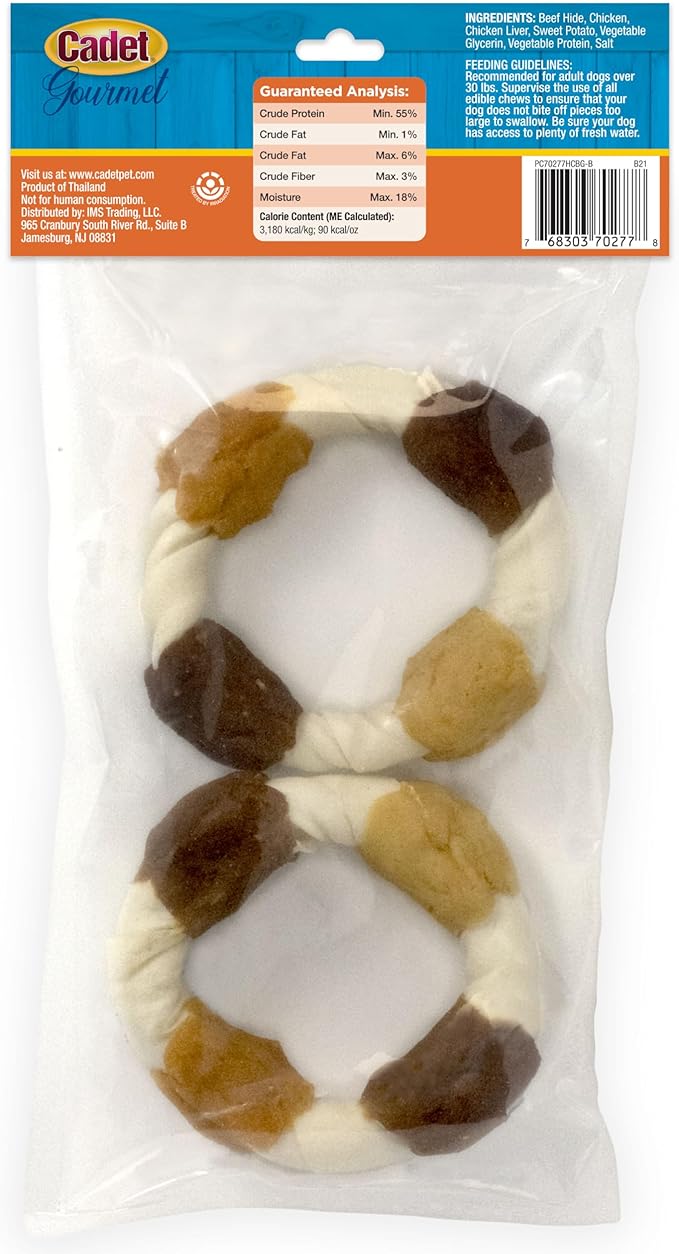 Cadet Gourmet Triple-Flavored Ring - Beef Hide Kabob Dog Treats - Healthy & Natural Chicken, Liver, & Sweet Potato Dog Treats for Dogs Over 30 lbs. (2 Count)