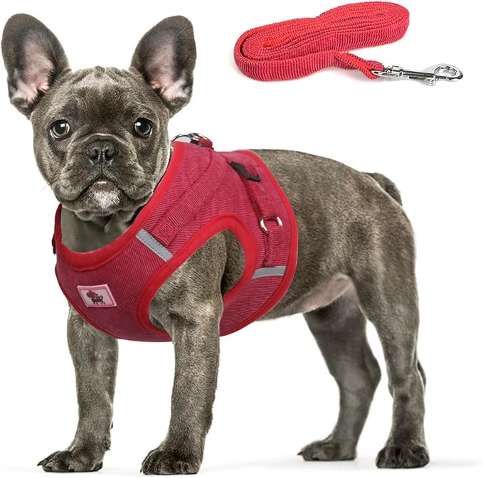 FEimaX Dog Harness and Leash Set, No Pull Reflective Adjustable Pet Harnesses for Puppy Kitten Soft Corduroy Chest Harness for Small Medium Dogs and Cats Easy Control Vest for Outdoor Walking