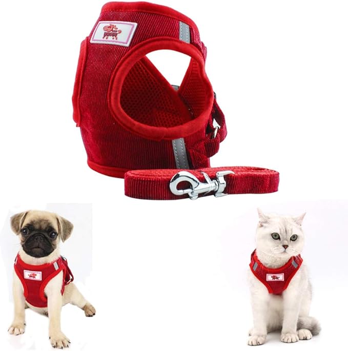 FEimaX Dog Harness and Leash Set, No Pull Reflective Adjustable Pet Harnesses for Puppy Kitten Soft Corduroy Chest Harness for Small Medium Dogs and Cats Easy Control Vest for Outdoor Walking