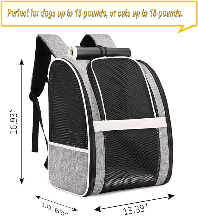 - Pet Backpack Carrier Dimensions:13" L x 10.63" W x 16.54" H. Perfect for dogs up to 14-pounds, or cats up to 17-pounds. Easily fits cats, small dogs, and most other small/medium-sized pets! Please measure your pet before purchasing - LENGTH: neck to base of tail; HEIGHT: floor to top of shoulder