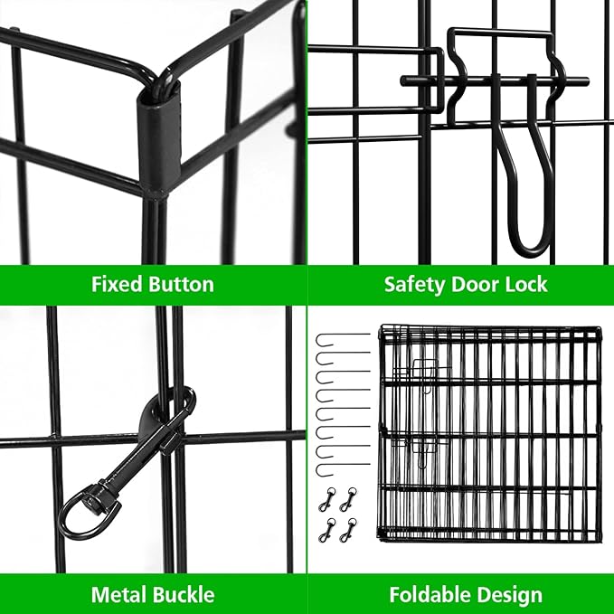 - Sturdy Dog Fence:Exercise dog pen has 8 panels 24H Inches 4 ground stakes,3 secure locking thumb snaps,pet playpen is ideal for small animals