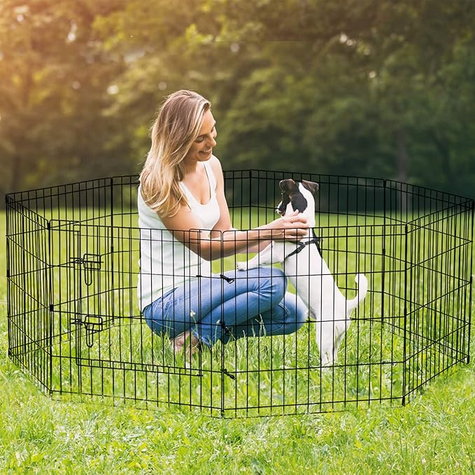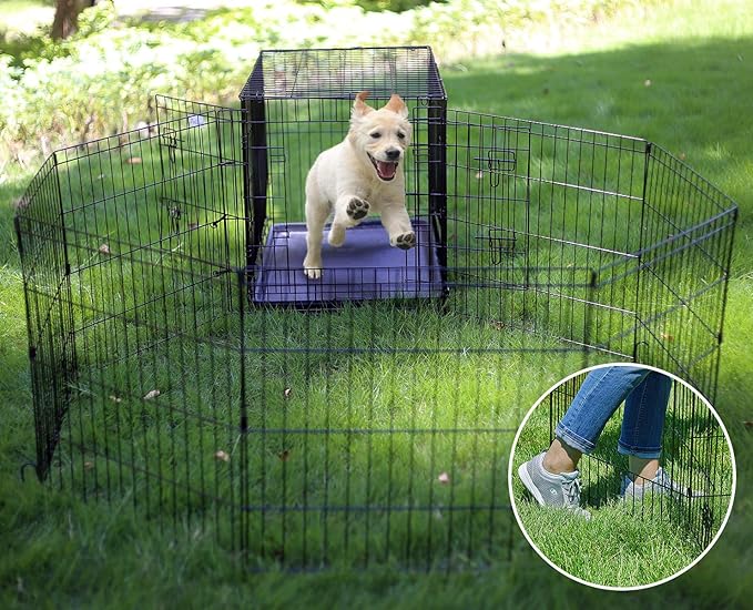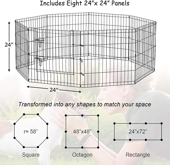 Puppy Pet Playpen 8 Panel 24 Inch Indoor Outdoor Metal Portable Folding Animal Exercise Dog Fence Ideal for Pet Animals Dog Cat Rabbit Breed Puppy (24" x 24" x 8)
