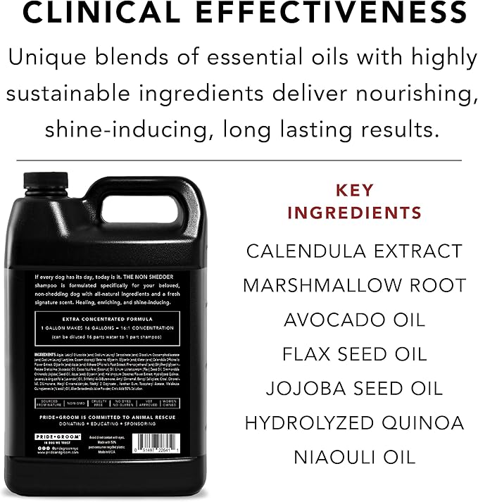 - COATCARE: Each PRIDE+GROOM formula contains unique blend of all-natural essential oils, signature scents and sustainable ingredients for dog’s specific coat + skin types that provide healing, hydrating, cleansing, nourishing and beautifying benefits.