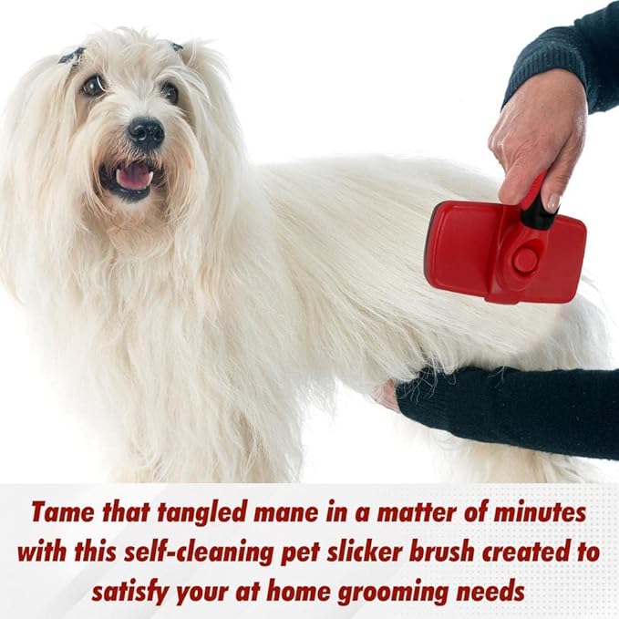 Self Cleaning Slicker Brush – Dog Slicker Brush Removes Loose Undercoat, Mats & Tangled Hair – Pet Slicker Brush for Small, Medium & Large Cats & Dogs with All Hair Types – with Retractable Bristles