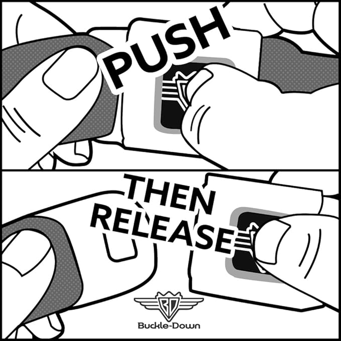 - The buckle is a miniature authentic SeatBelt Buckle, so you press the center button to release the clasp.