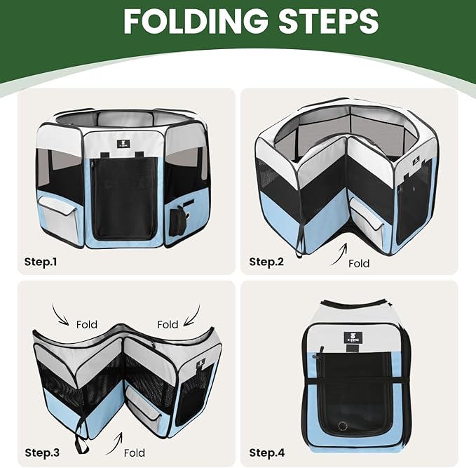 - The foldable pet playpen can folds completely flat for easy storage and portability (without carry case)