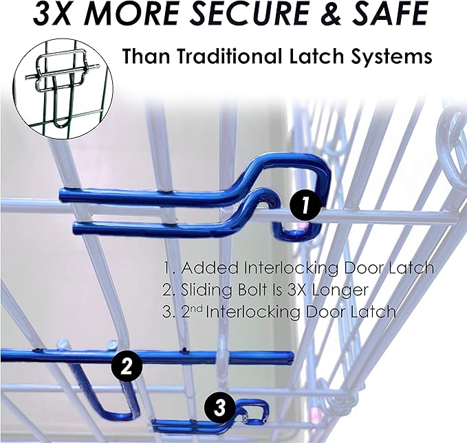 - [ EXTRA DURABLE ] Constructed from double powder-coated sturdy steel for pets who like to tear and scratch at their kennels. The crates will provide a safe & cozy place for your furry friend while you are out, giving you a sense of relief.
