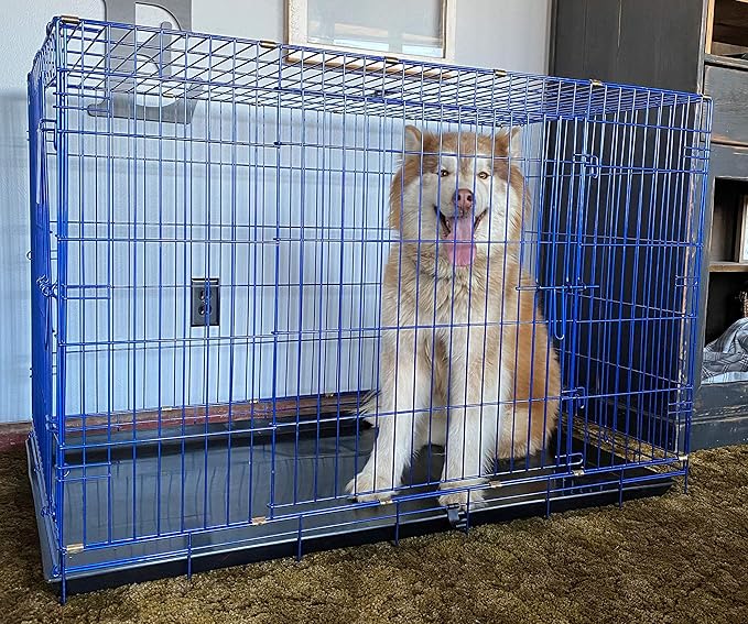 - [ DOUBLE DOOR KENNEL ] This 36 inch dog crate is equipped with both front and side doors that securely latch with (2) slide bolt latches. Keep the doors un-latched for a warm den-like, personal safe space that your dog, puppy, or cat will love to call home.