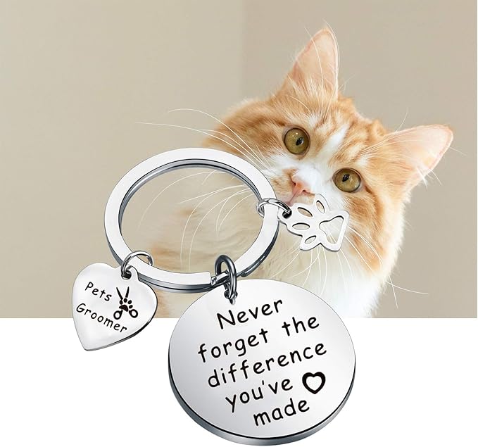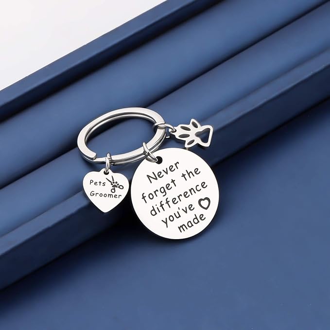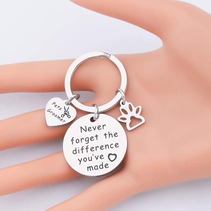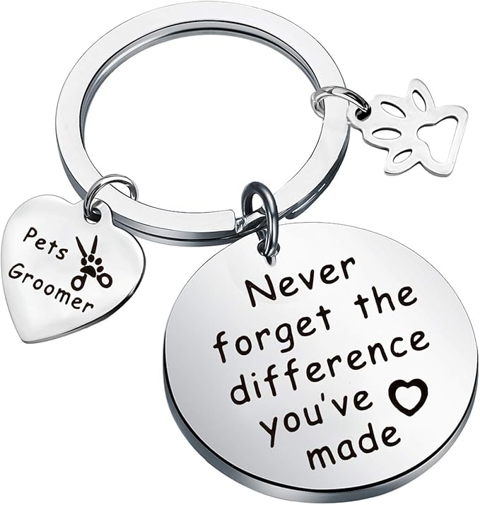 - Pet grooming is an art, a good dog beautician is hard to forget, show your pet groomer some love with this gift. Pet groomer keychain is hand-printed with the words " Never forget the difference you've made", inspirational words expresses a powerful spiritual strength and perseverance. A gift to a groomer to show your appreciation.