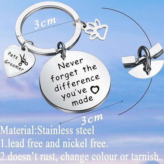 MYOSPARK Pet Groomer Keychain Dog Salon Gift Never Forget The Difference You've Made Appreciation Jewelry Pet Beautician Gift