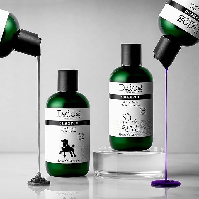 Diego dalla Palma D-Dog Pet Shampoo Black Hair - Shines and Brightens Fur - Enhances Color of Black and Dark Coat - Removes Dirt and Buildup with Every Wash - Hypoallergenic and Alcohol Free - 8.5 Oz