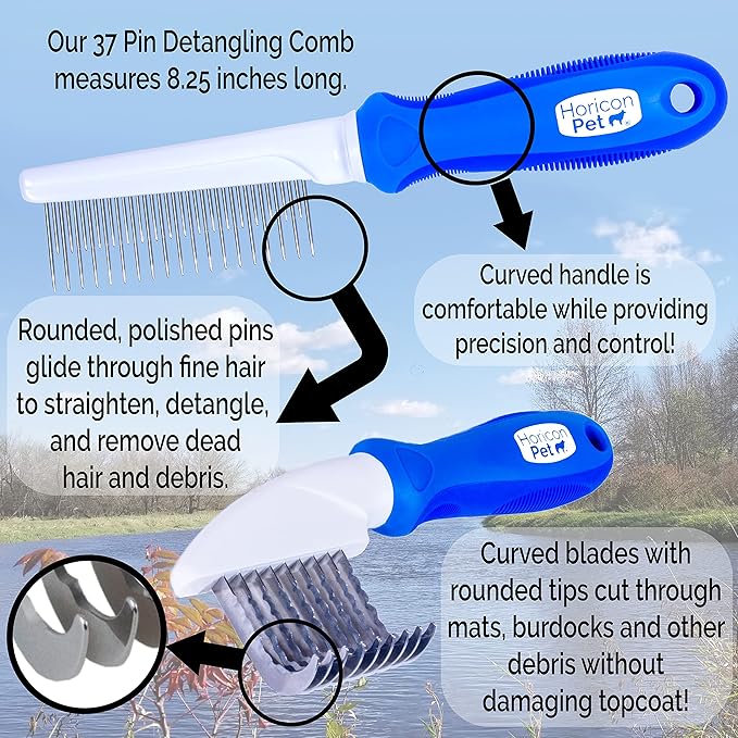 - 2 In 1 Dematting and Detangling Grooming Comb set is perfect for removing mats, debris, and tangles from fur and is great for daily grooming!