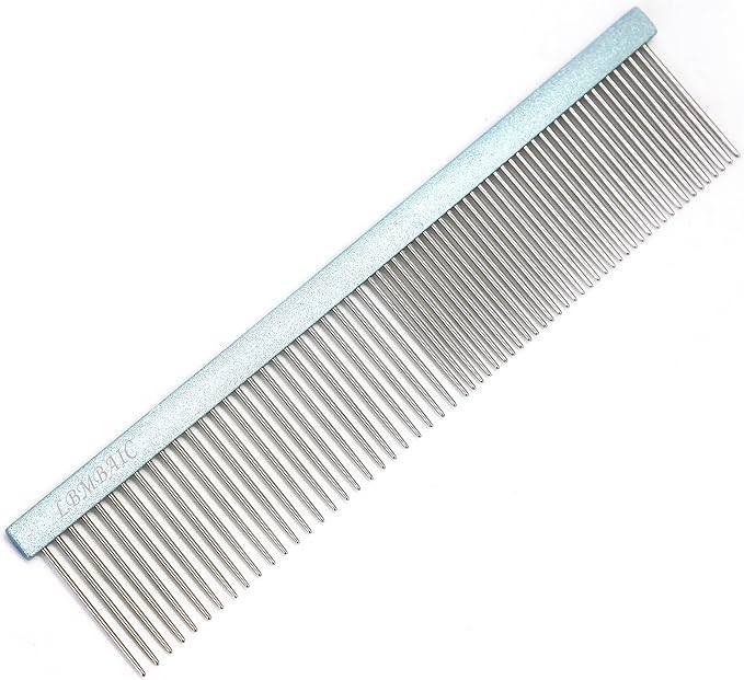 Metal Dog Grooming Comb for Shedding Tangles,Knots,Mats.Dog Combs With Long Wide Tooth for Long Thick Curly Hair Metal Pet Comb for Poodles and Goldendoodles Dematting.7.5INCHES.(Blue)